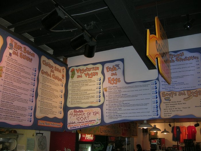 Hot pastrami, allbeef hard salami, Swiss cheese, cream cheese on pumpernickel.